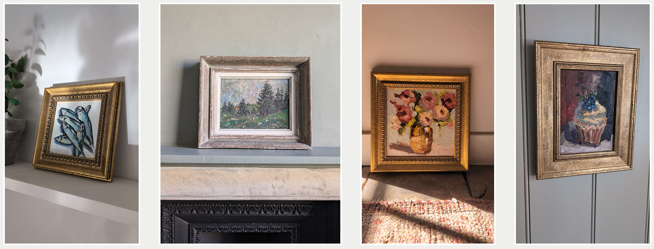 In every room, Tracey had curated original oil paintings by local artists, small works full of mood and colour. From vibrant sardines to deep woodland scenes and joyful still lives, they brought a sense of quiet playfulness, gently grounding the home’s layered character.