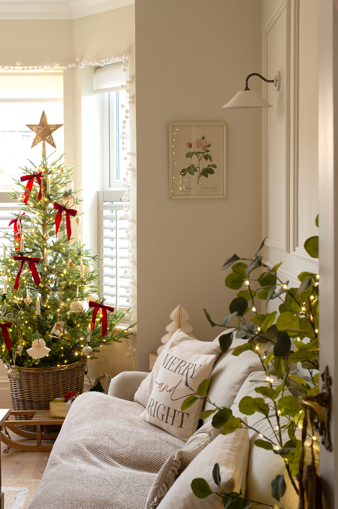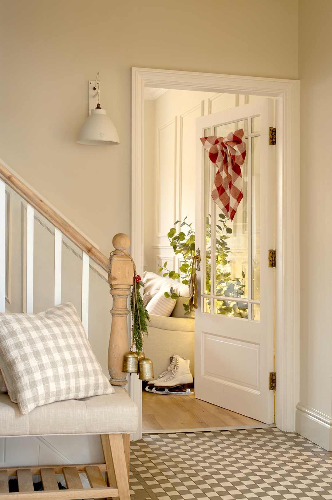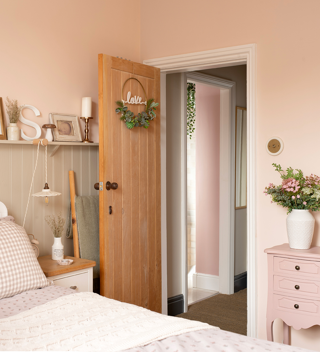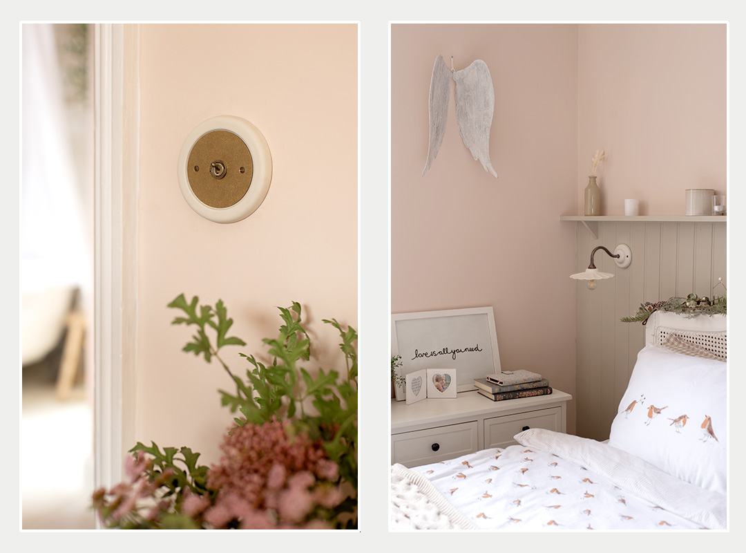 Moving through the house, lighting becomes less about statement and more about guidance and comfort. In the hallway, Sarah chose a Flatford wall light with the Ophelia shade. Positioned alongside the staircase, it offers reassurance and softness, a gentle pause between rooms.