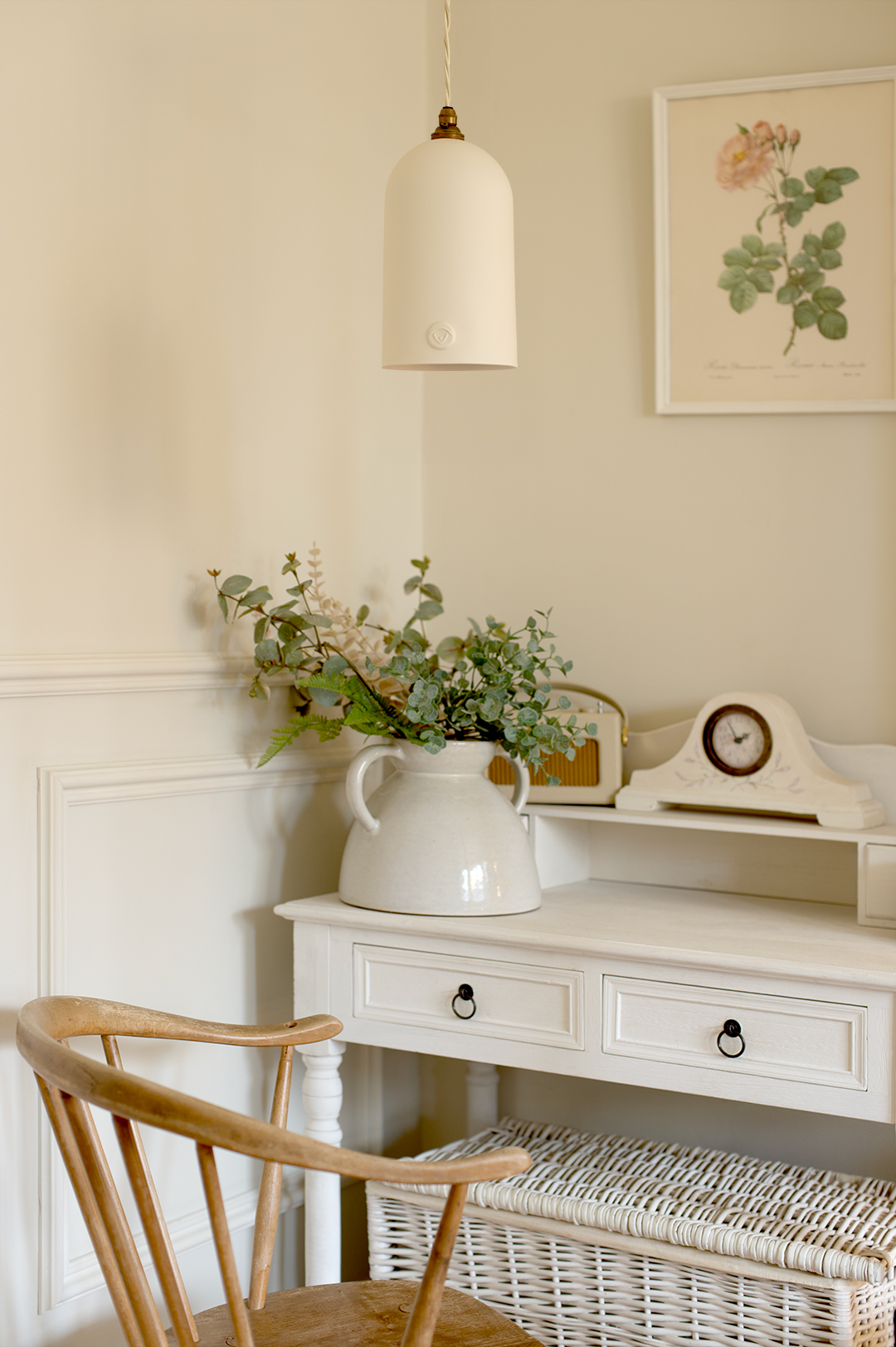 In a small study area, a Bronte pendant provides focused task lighting. Hung low, it creates a sense of purpose without losing the warmth that runs through the rest of the home. It is a reminder that good lighting is not only about atmosphere, but about supporting how a space is actually used.
