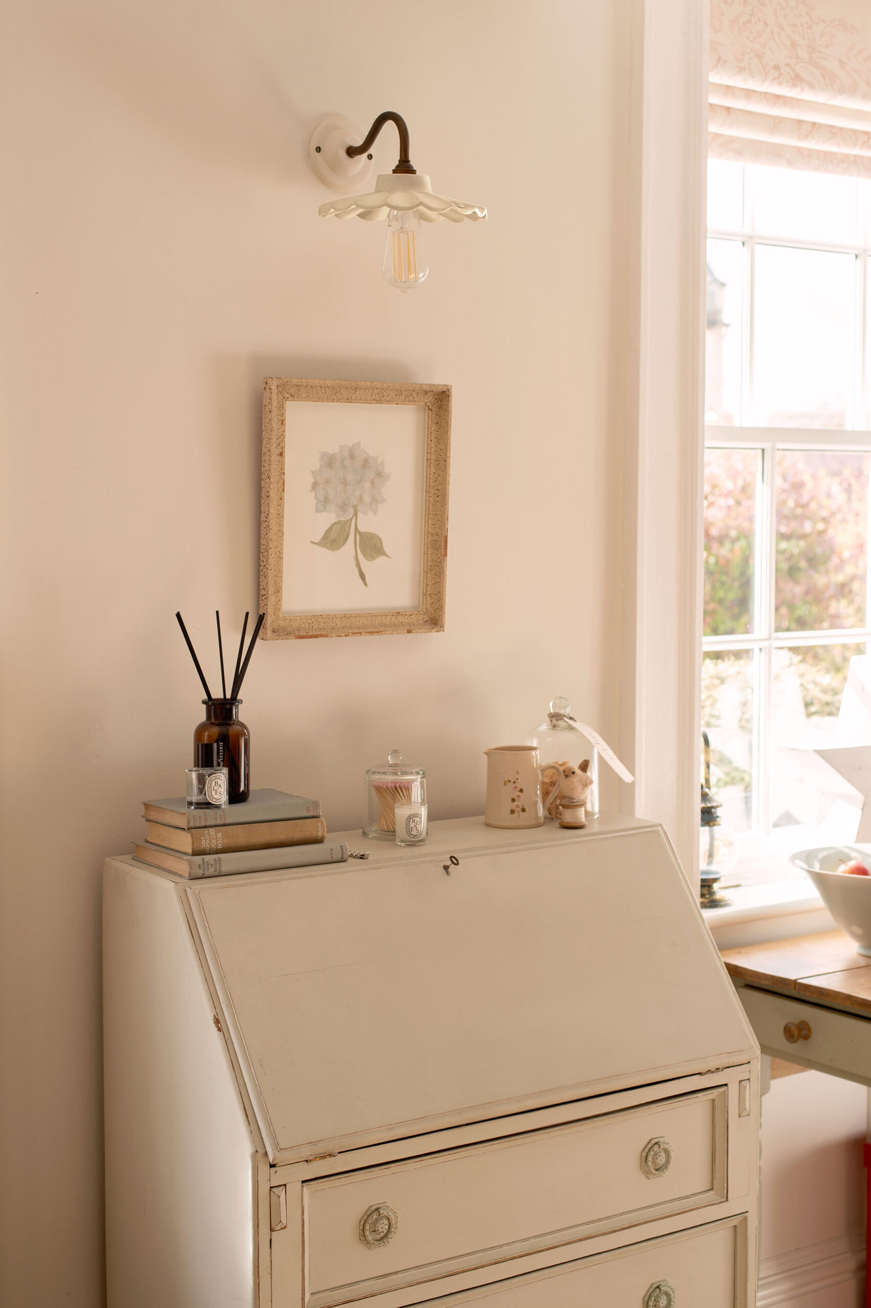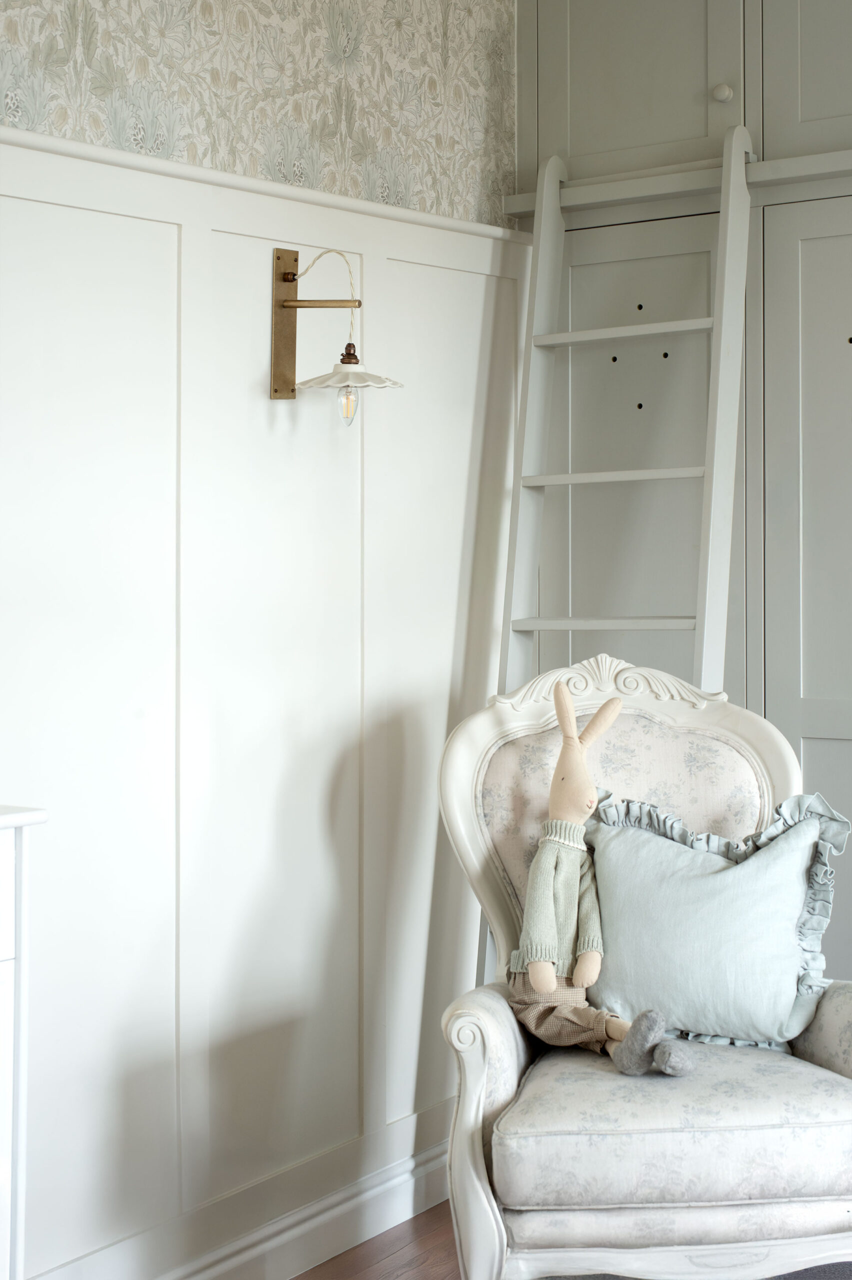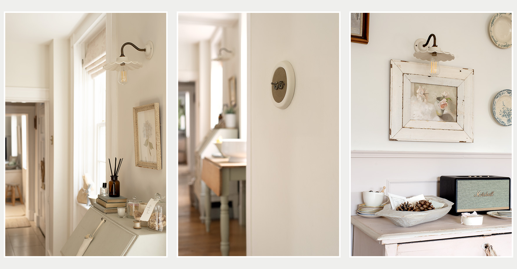 Elsewhere, a Petite Giselle Wall Light marked out a quiet reading corner. Its scalloped edge echoed the gentle curves of an armchair and the ruffles of a cushion placed upon it. A small vignette of comfort