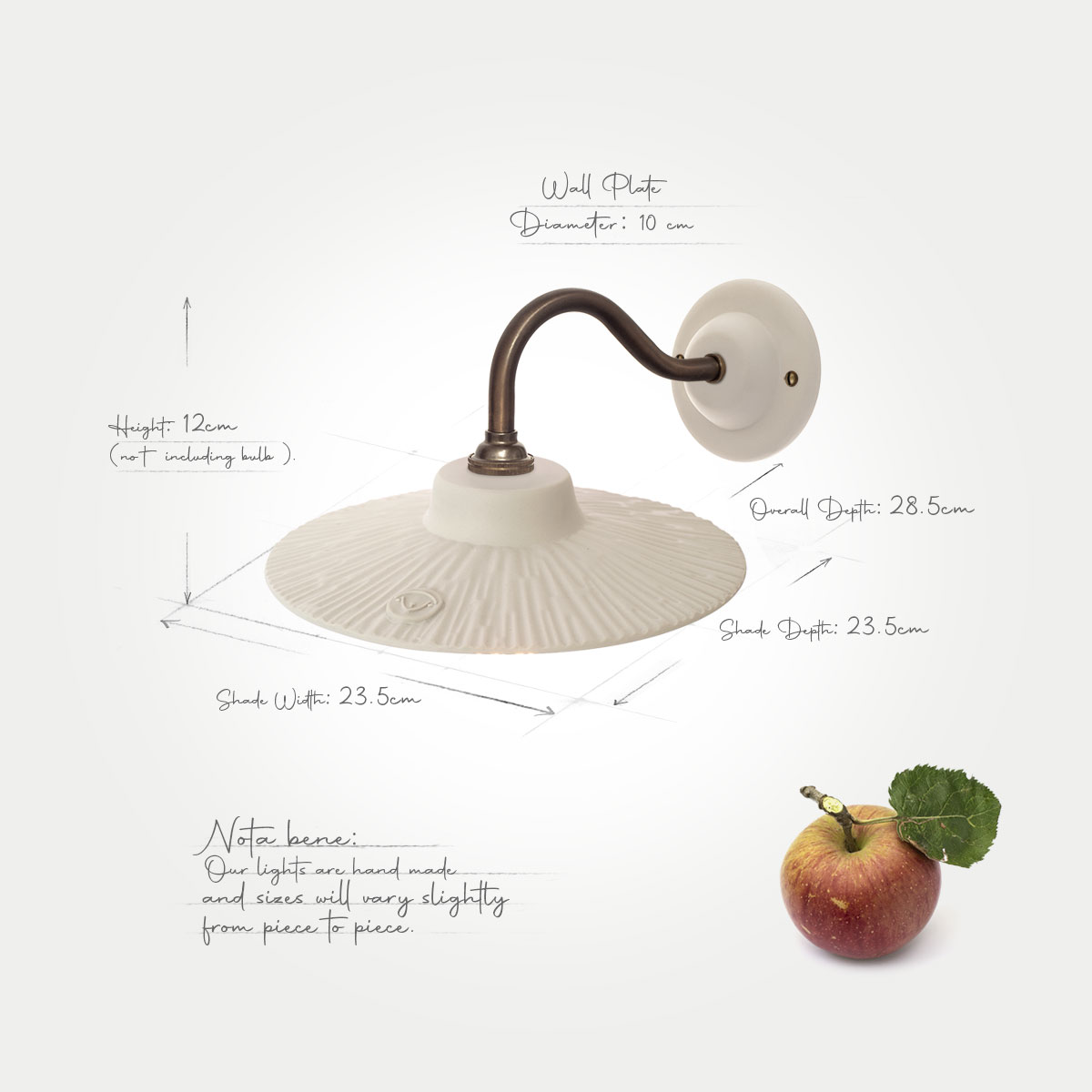 Fitting Height (including bulb) 18cm Width 22.5cm