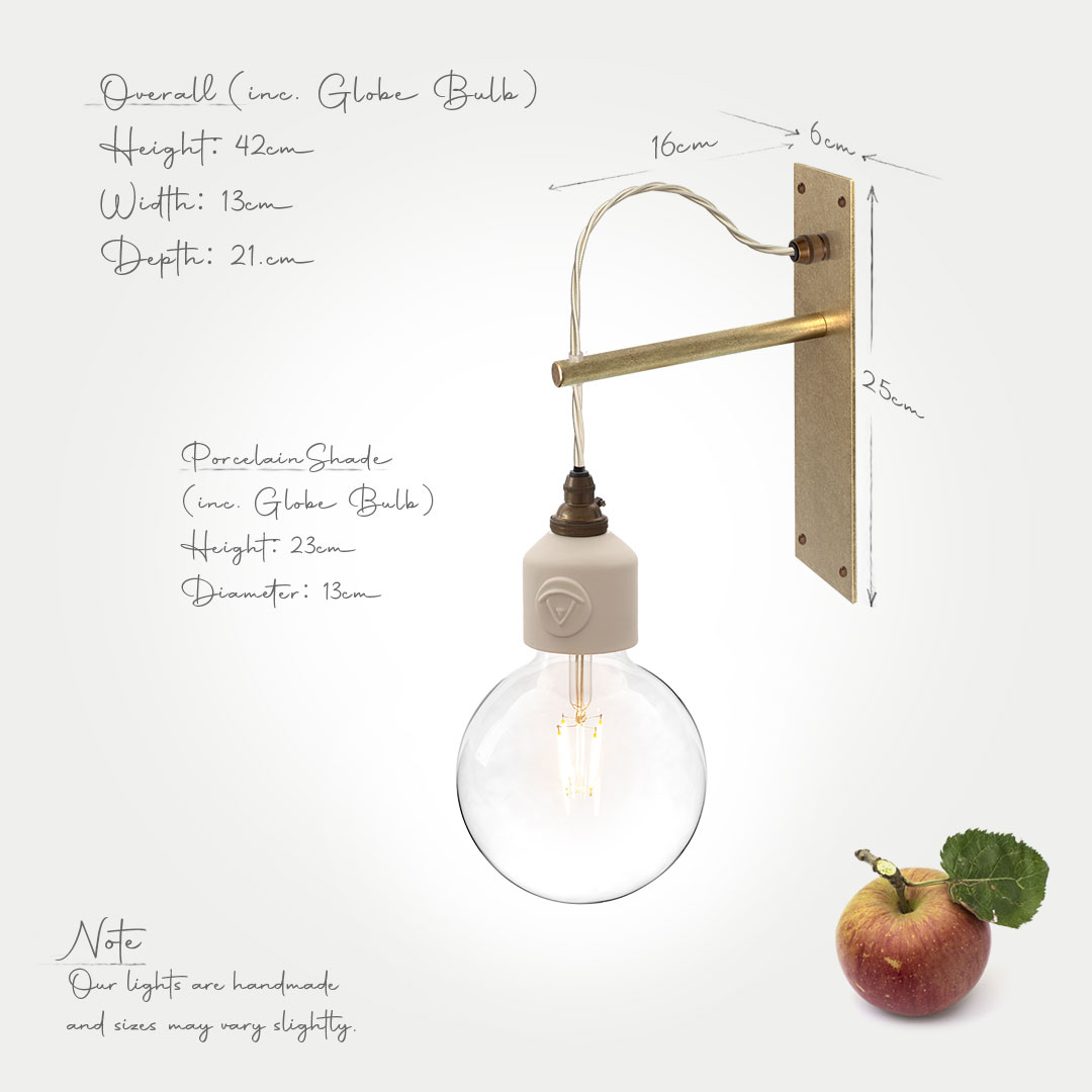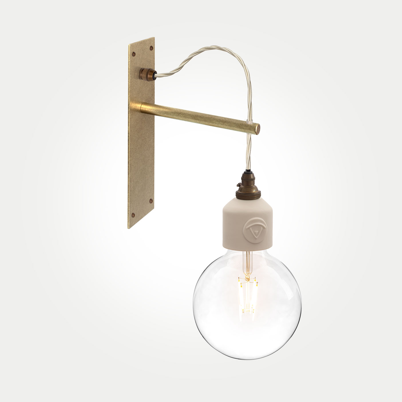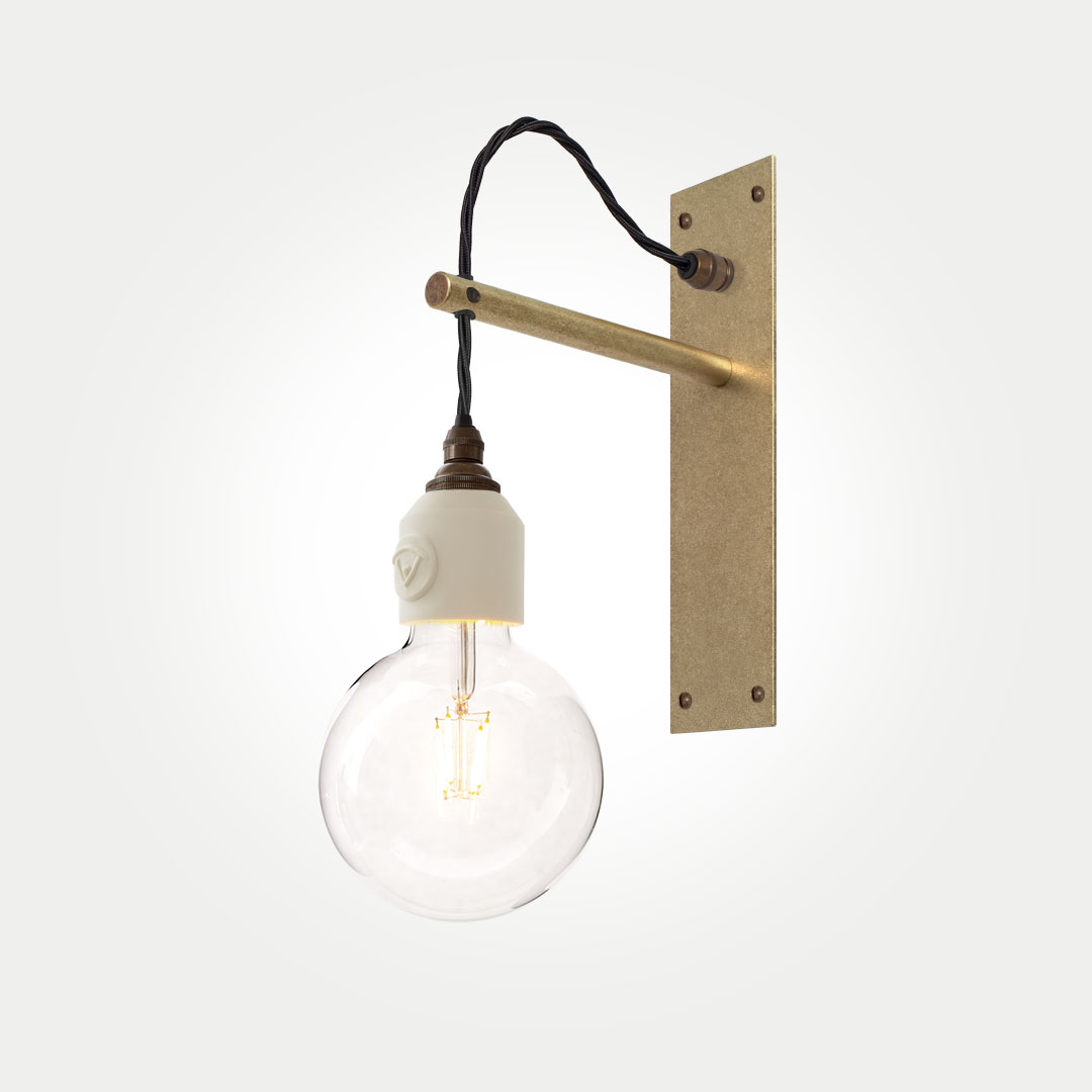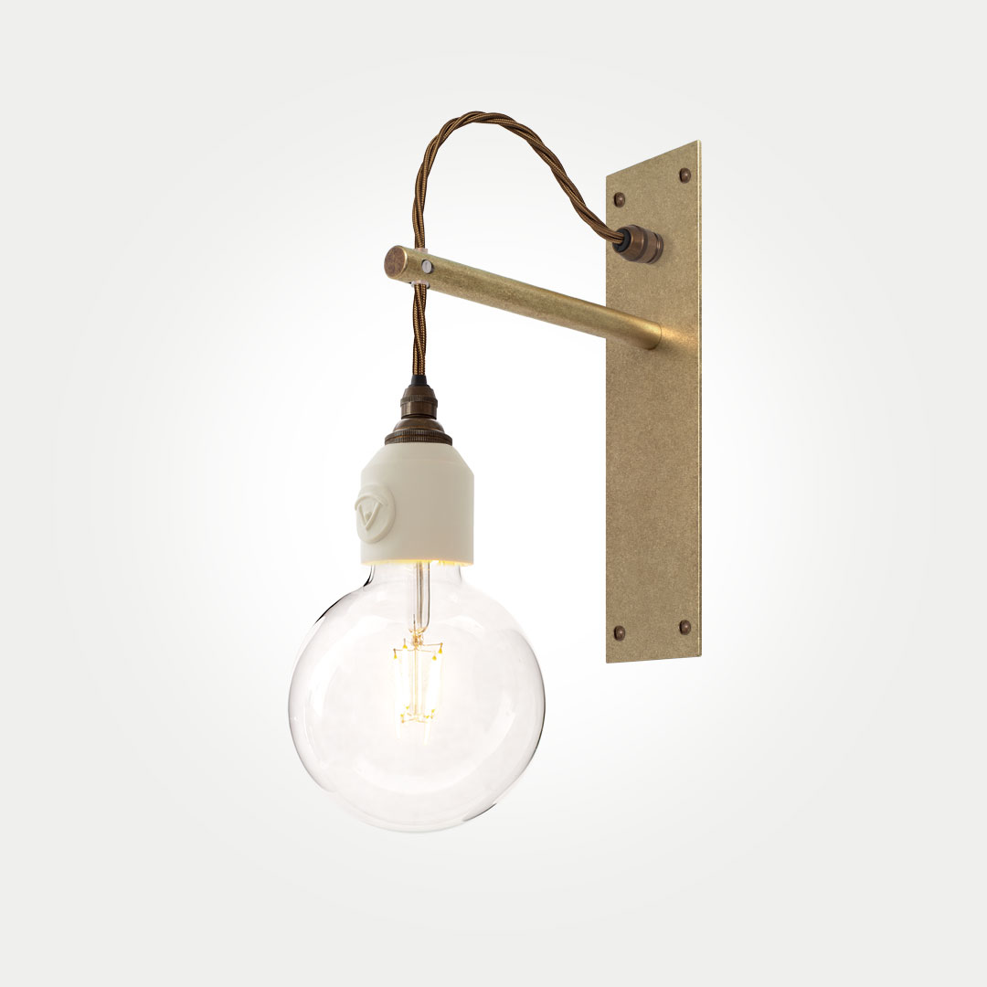 The Boxted wall bracket is meticulously handcrafted from solid brass and finished with a softly antiqued live patina. Designed with quiet, purposeful simplicity, it is paired with an elegantly understated Limoges porcelain shade.