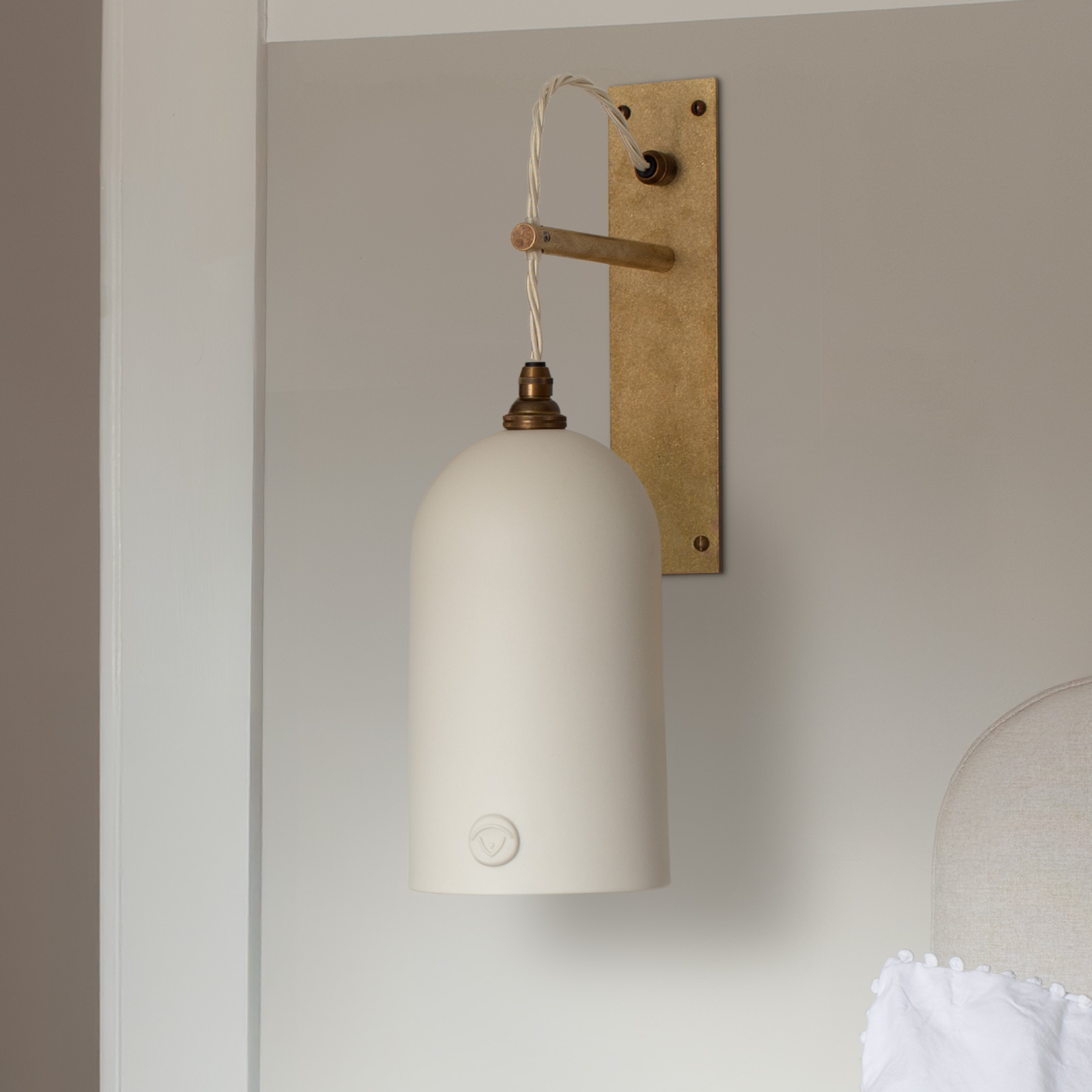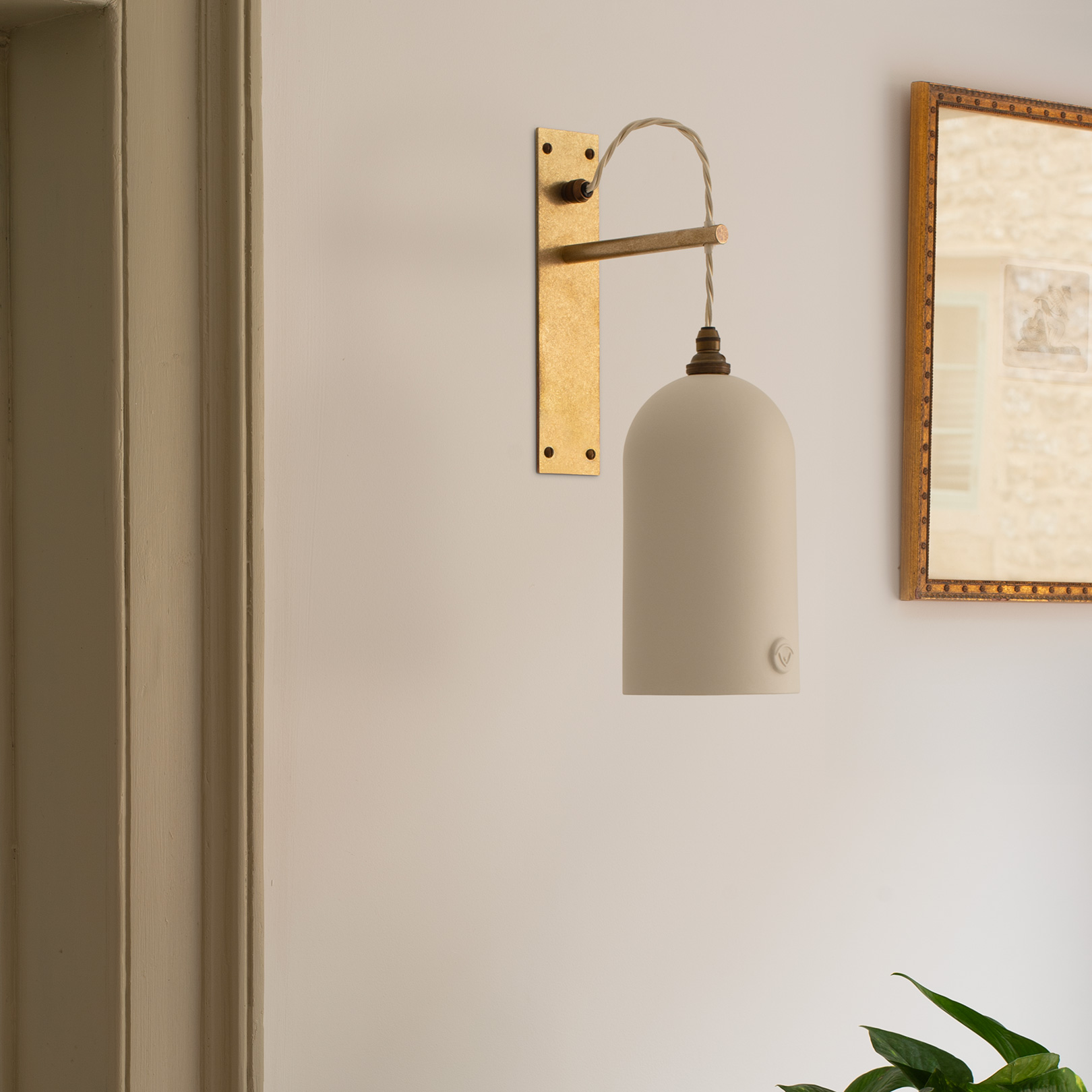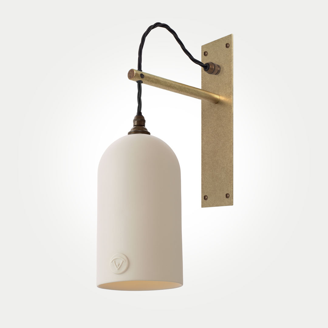 Boxted Wall Light with Brontë Porcelain Shade – Solid Brass, Antiqued Finish