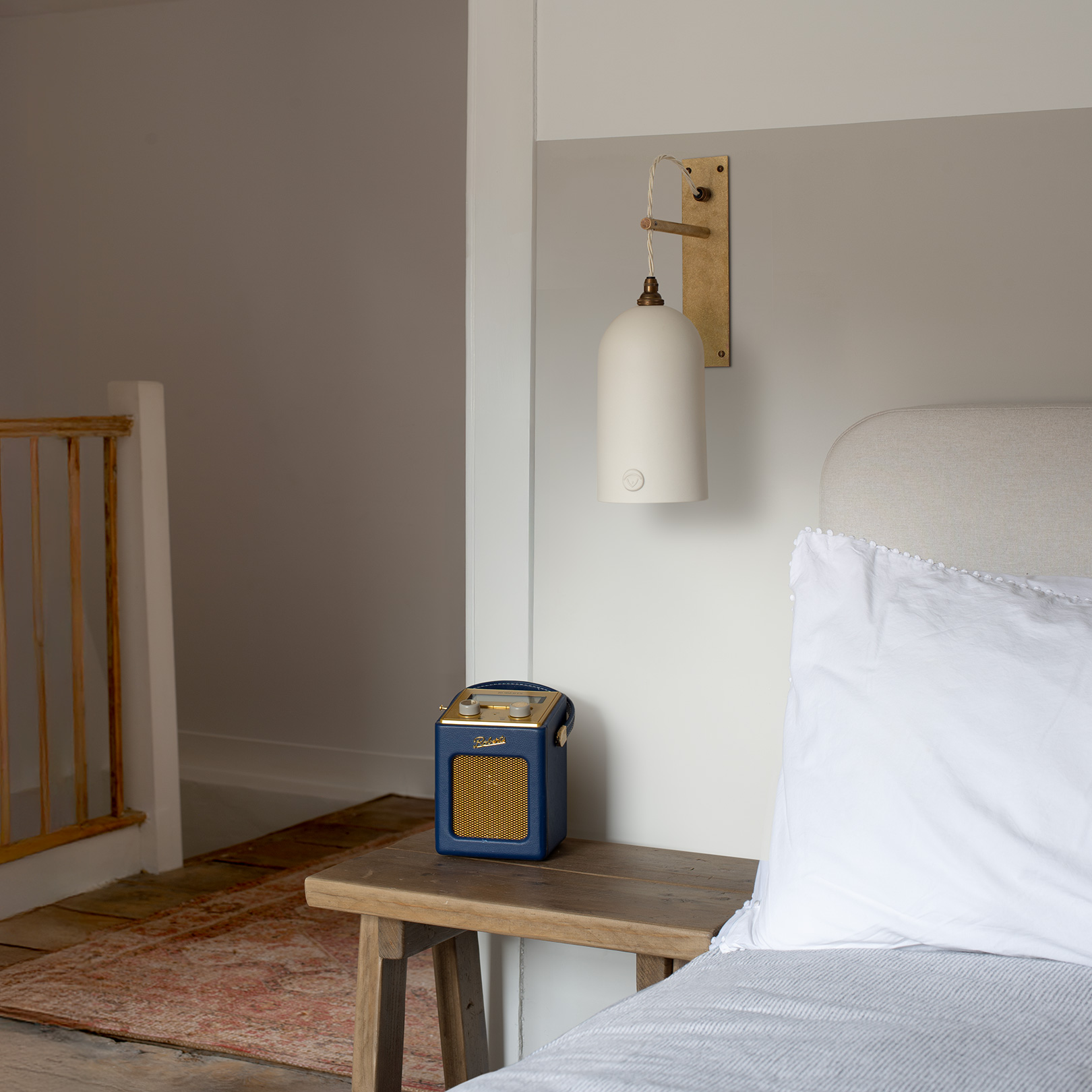 The Boxted wall bracket is meticulously handcrafted from solid brass and finished with a softly antiqued live patina. Designed with quiet, purposeful simplicity, it is paired with an elegantly understated Limoges porcelain shade.
