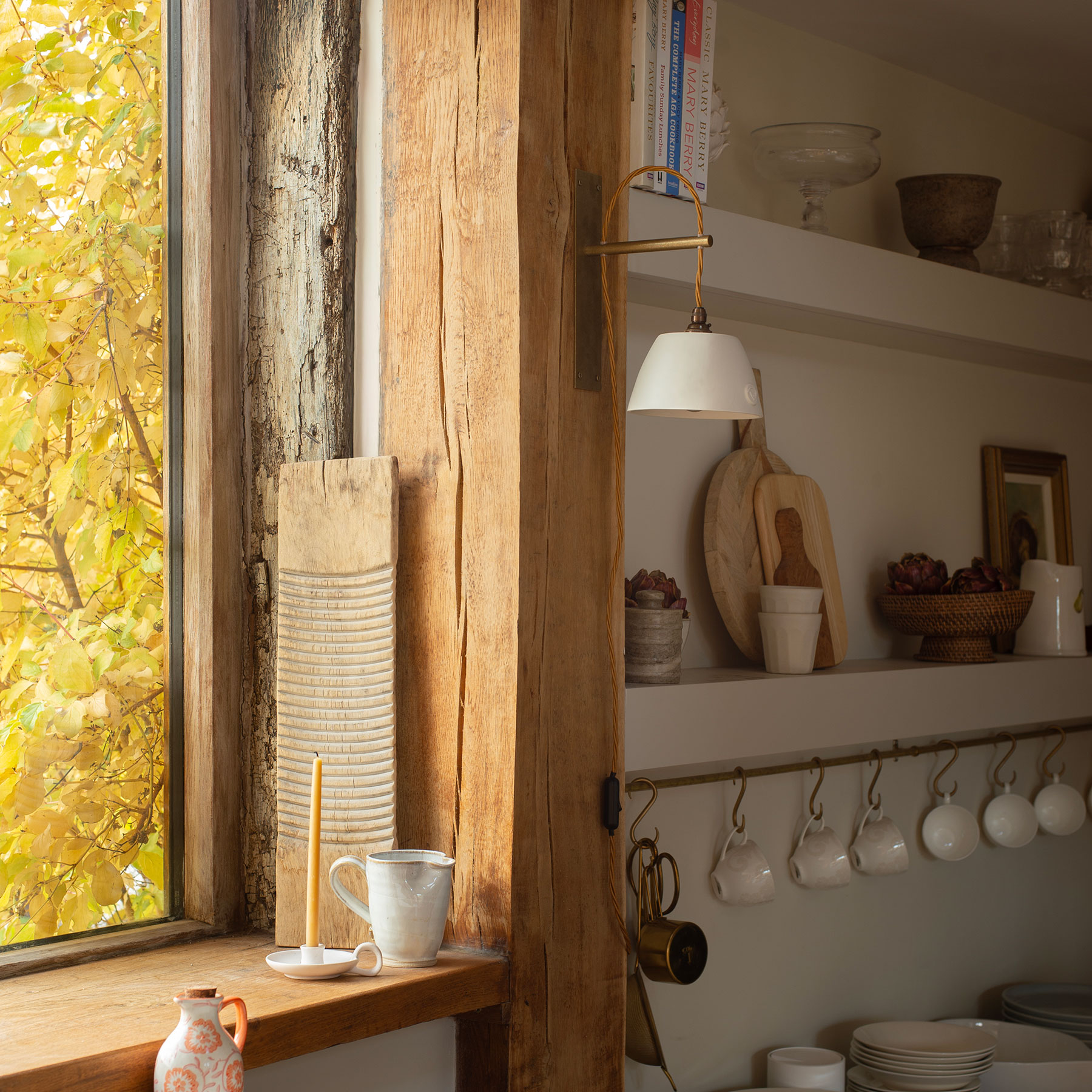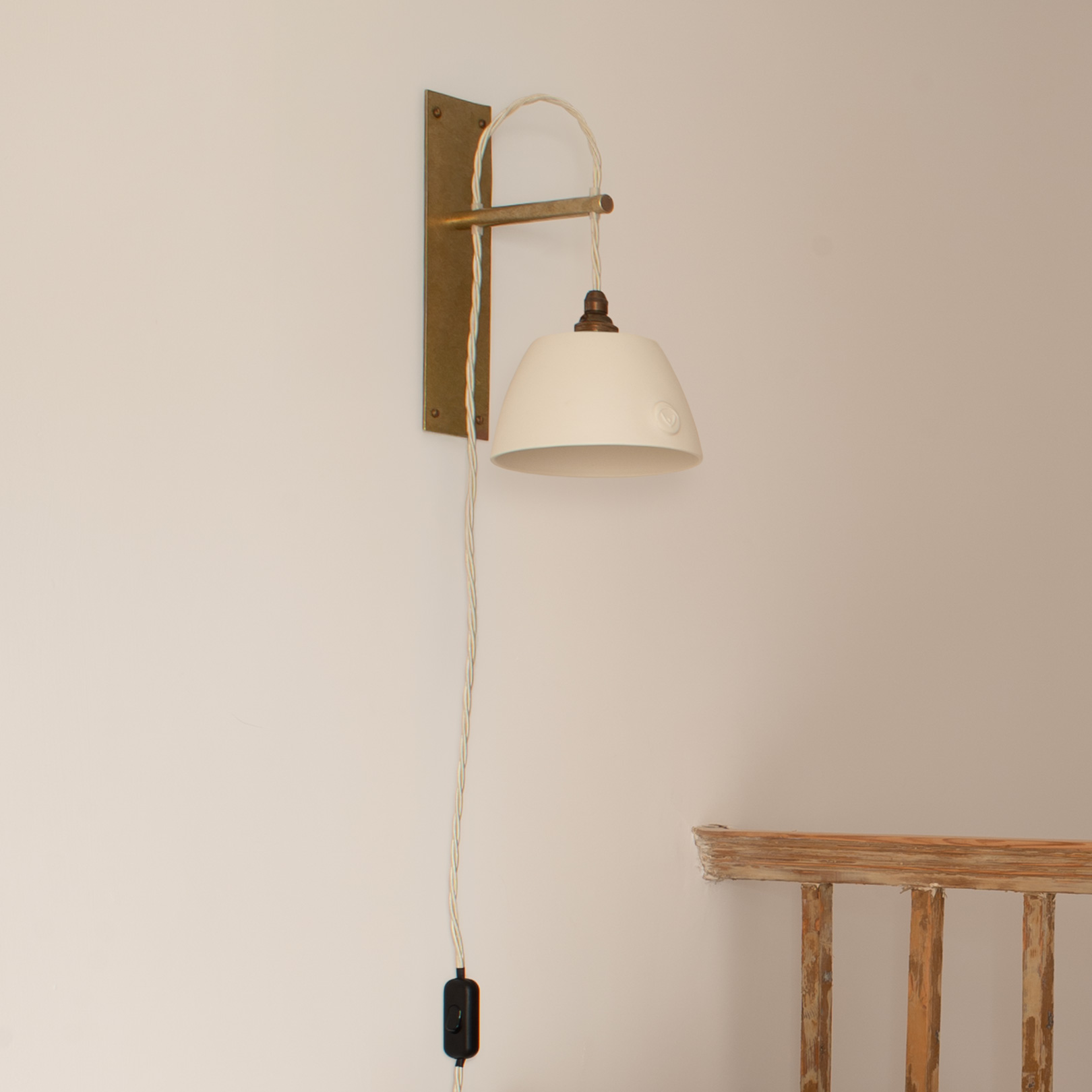 Boxted Wall Light with Cottage Porcelain Shade – Solid Brass, Antiqued Finish
