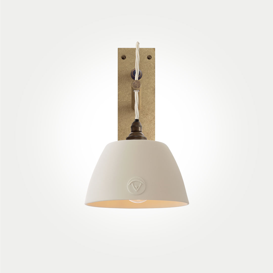 Boxted Wall Light with Cottage Porcelain Shade – Solid Brass, Antiqued Finish