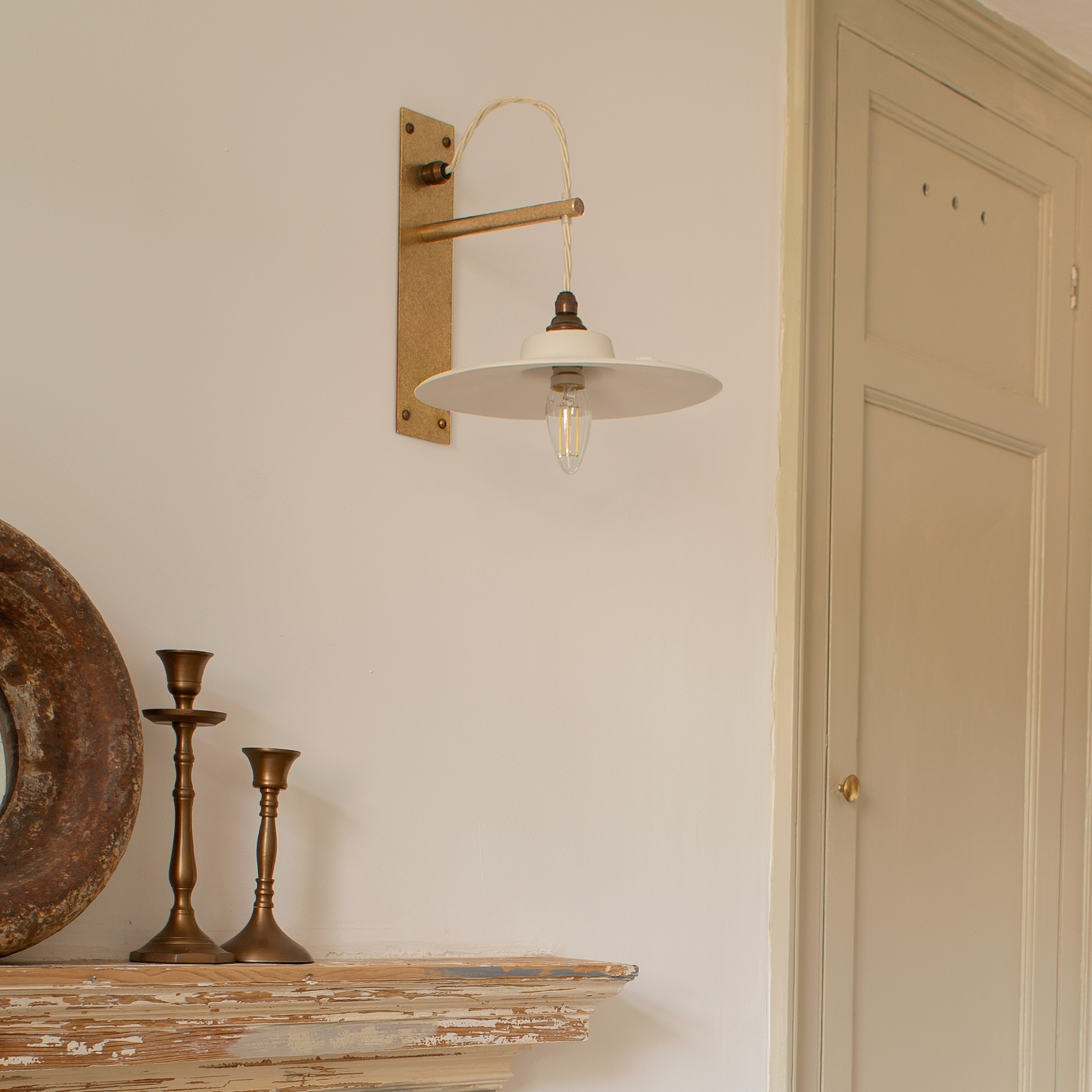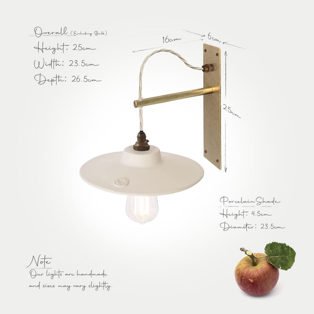 Boxted Wall Light with Fonteyn Porcelain Shade – Solid Brass, Antiqued Finish