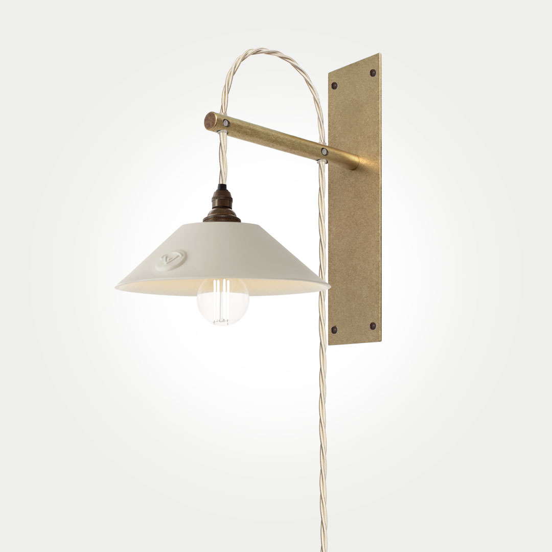 Boxted Wall Light with Small Keats Porcelain Shade – Solid Brass, Antiqued Finish