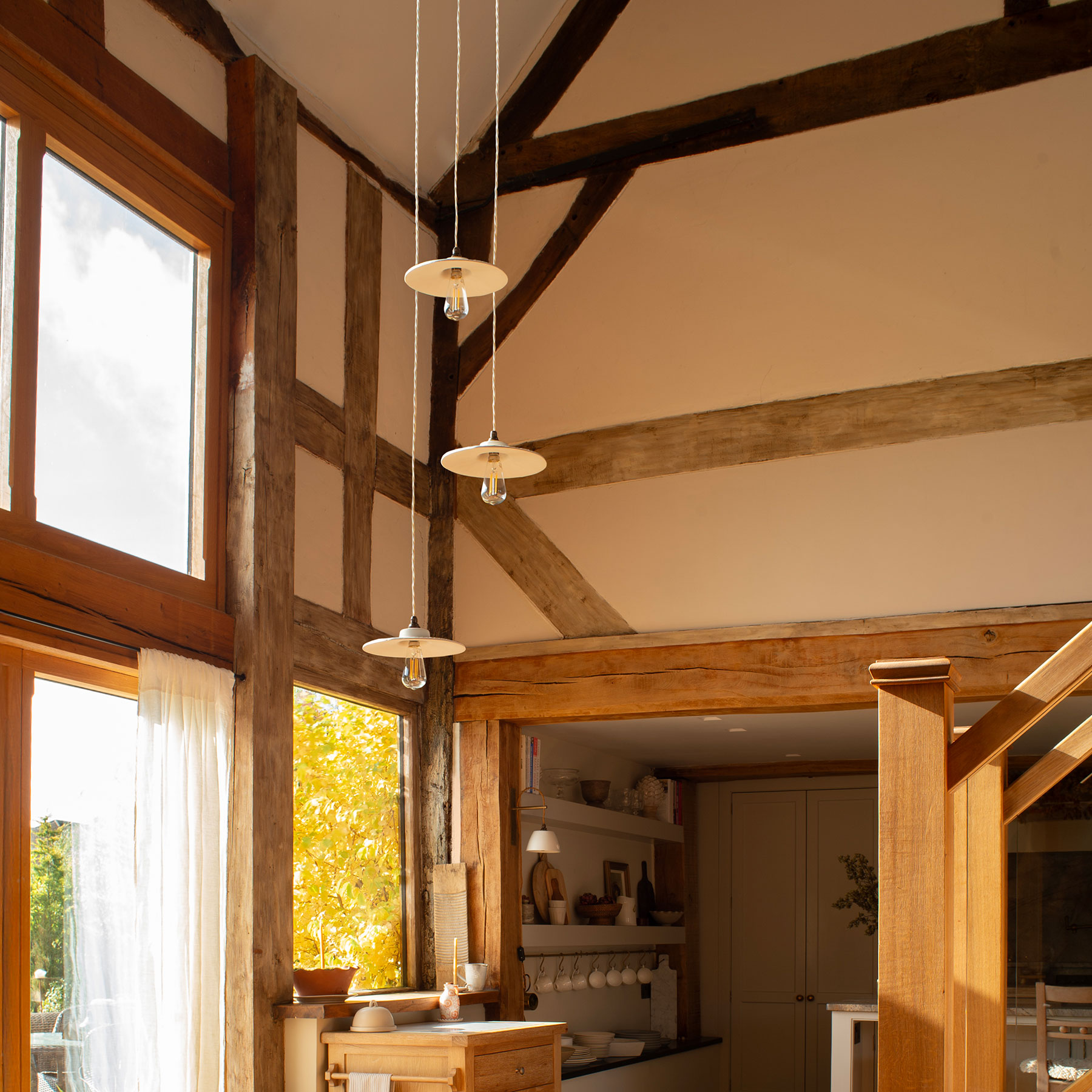 Consider using our ceiling cable clamps with this pendant to make a feature of the vintage braided cable.